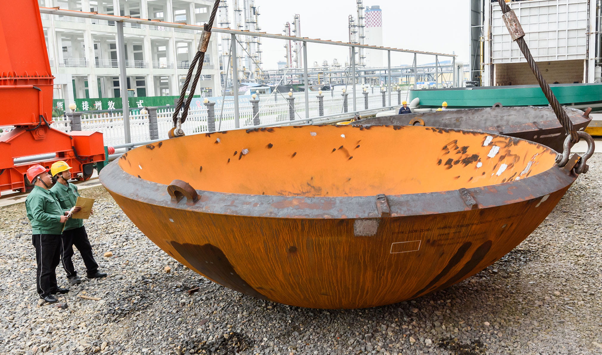 從最初500T壓機,靠一錘一錘砸出封頭的小作坊,到現在直徑7500mm,厚度400mm以下整體一次成型,